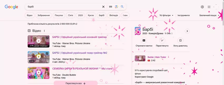 Natürlich durfte auch der Technologieriese Google nicht fehlen und fügte zu Ehren der Filmpremiere seiner Suchmaschine einen "Passaholic" hinzu. Wenn man "Barbie" oder die Namen der Schauspieler Margot Robbie und Ryan Gosling in die Suchleiste eintippt, erscheint ein rosa Feuerwerk auf der Seite und die Suchmaschine wird rosa eingefärbt. Dies funktioniert mit Suchanfragen in jeder Sprache.