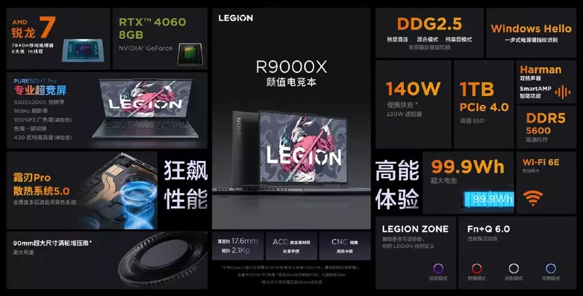 Lenovo Legion R9000X 2023: 165Hz Display, Ryzen 7 7840H Chip und 140W Ladeleistung