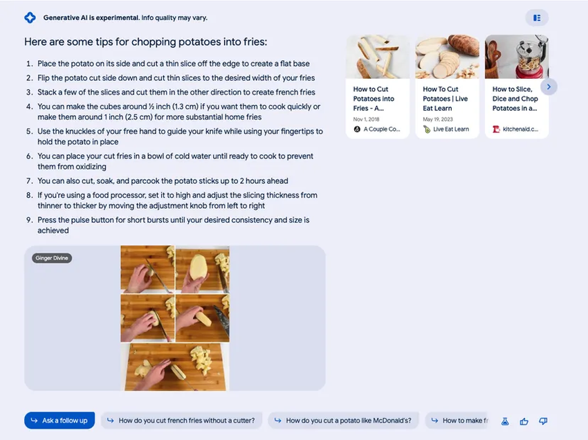 Googles Suchmaschine "Search Generative Experience", die auf künstlicher Intelligenz basiert, hat gelernt, Bilder und Videos in ihren Ergebnissen zu erzeugen.