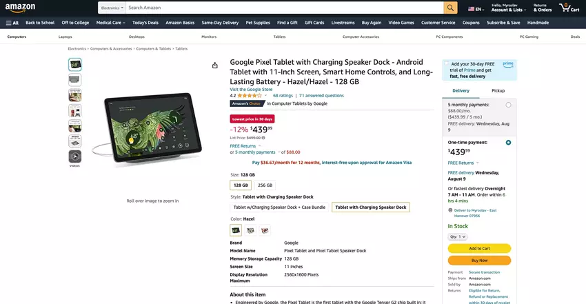 - Google Pixel Tablet, 128GB - check price on amazon.