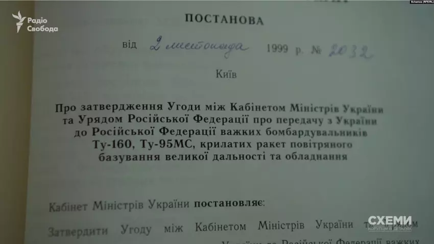 Ukrainische Journalisten erhielten den Text des Abkommens und eine Liste mit den Nummern der Raketen, die zur Begleichung der Schulden nach Russland geschickt wurden. Beim Vergleich mit den Nummern auf den Wrackteilen der Kh-55 wurden mehr als ein Dutzend Übereinstimmungen gefunden.