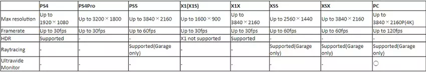 Der Entwickler präsentierte eine Tabelle, die deutlich macht, mit welcher Auflösung und Framerate die Spieler rechnen können.
