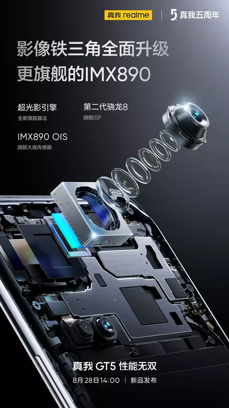 Es ist offiziell: das realme GT 5 wird eine 50 MP Sony IMX890 Hauptkamera mit optischer Stabilisierung erhalten
