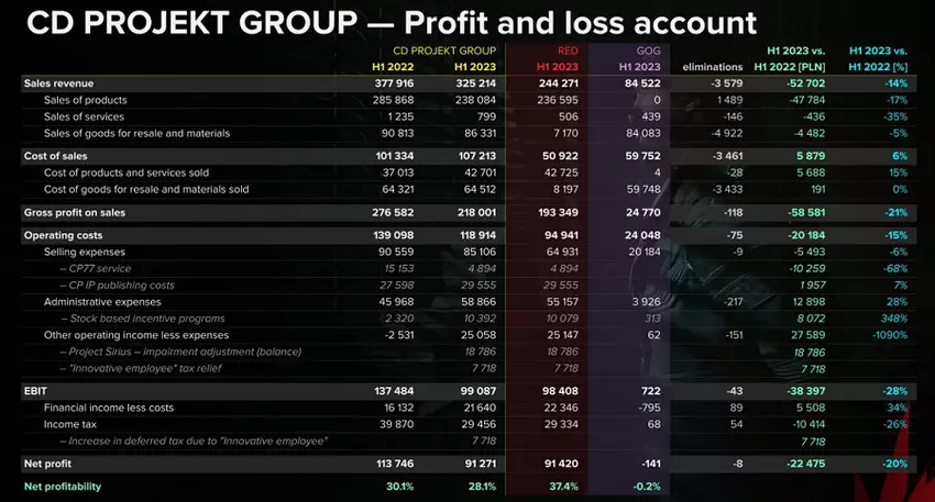 Der Nettogewinn von CD Projekt betrug 22 Millionen US-Dollar, wobei die Spieleverkäufe im ersten Halbjahr 2023 um 14 Prozent und der Betriebsgewinn um 28 Prozent zurückgingen.