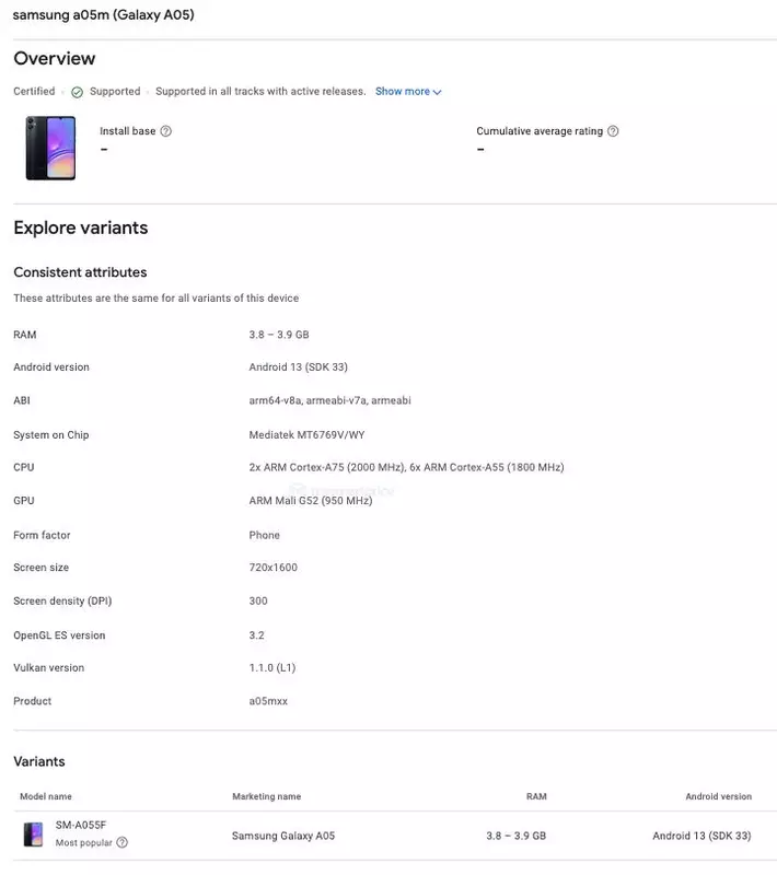 Leaks der Budget-Smartphone Samsung Galaxy A05 weiterhin auf dem Internet erscheinen. Dieses Mal wurde die Neuheit in der Google Play Console Datenbank entdeckt.
