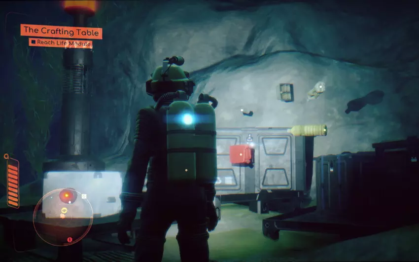 All diese drei Abteile sind durch einen kleinen Korridor verbunden, von dem aus man ins Wasser hinabsteigen kann. Außerdem gibt es ein Funkgerät, um Tim zu kontaktieren, einen KI-Assistenten Mercury, der versuchen wird, mit uns zu kommunizieren, und einen Bordcomputer, an dem wir Aufgaben erledigen können. Diese sind in zwei Arten unterteilt: Basis- und Routineaufgaben (analog zu den Zusatzaufgaben). Nachdem wir alle Aufgaben und Anweisungen von Tim erhalten haben, steigen wir von unserer Basis ab und die Hauptphase des Spiels beginnt.