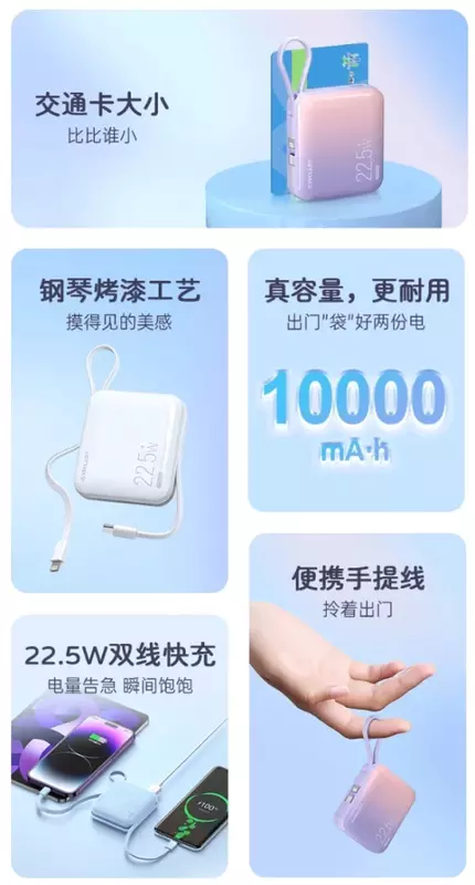 Die Neuheit trägt den Namen Teclast M10 Pro. Das Gerät hat kompakte Abmessungen von 74×66×24 mm, ein Gewicht von 185 Gramm, ein Volumen von 10 000 mAh, zwei integrierte Kabel sowie zwei Anschlüsse: USB-A und USB-C. Die maximale Leistungsabgabe des Geräts beträgt 22,5 Watt. Die Neuheit ist kompatibel mit Smartphones von Apple, Huawei, Xiaomi, Samsung, usw.