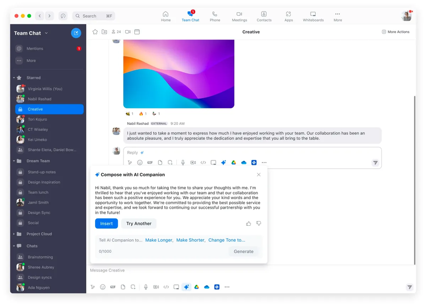 In der Messaging-App Zoom Team Chat werden die Nutzer in der Lage sein, Unterhaltungen mit AI Companion zusammenzufassen. Diese Funktion wird in einigen Wochen verfügbar sein.