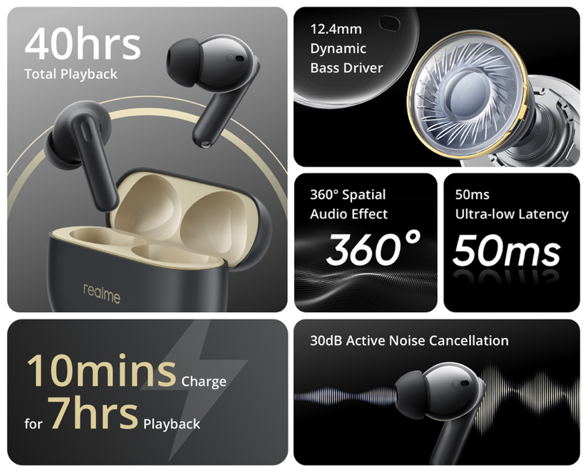 realme Buds T300: TWS-Kopfhörer mit ANC, Spatial Audio Technologie und bis zu 40 Stunden Akkulaufzeit für $25