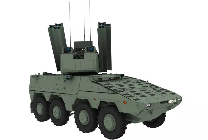 Die Arbeitsgemeinschaft ARGE NNbS entwickelt für die Bundeswehr ein Kurzstrecken-SAM-System mit IRIS-T-Raketen auf Basis des Boxer APC.