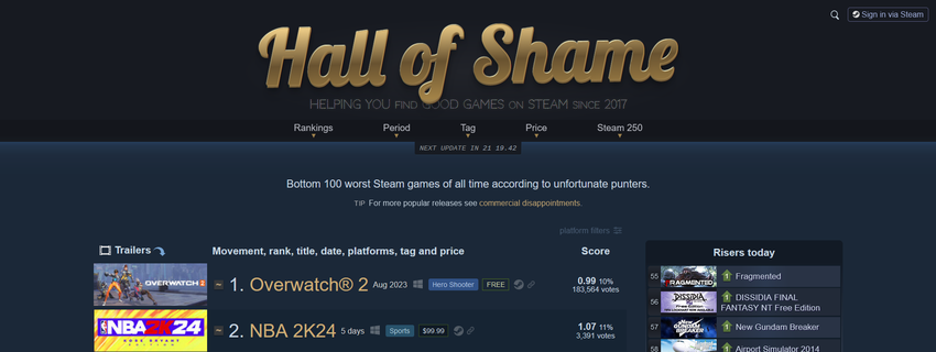 Solche Kritiken machten sich schnell bemerkbar, und auf der Website steam250, die verschiedene thematische Auswahlen von Spielen erstellt, belegte NBA2K24 einen ehrenvollen zweiten Platz in der Hall of Shame. Nur Overwatch 2 hatte ein "besseres" Ergebnis und belegte Platz 1. Nur Overwatch 2 ist zumindest kostenlos, während für 2K24 eine Gebühr von 60 Dollar fällig wird.