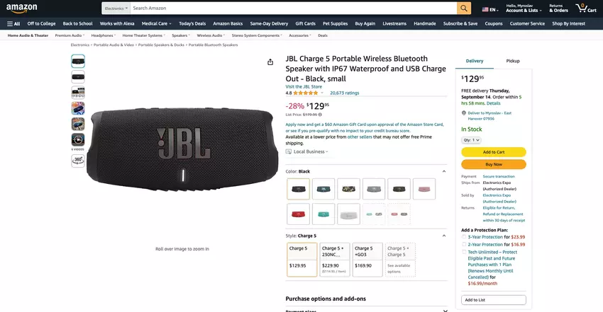 Die gg-Redaktion hat ein weiteres tolles Angebot auf Amazon gefunden - den JBL Charge 5 Wireless-Lautsprecher für $179.95. Es sind neun Farben verfügbar.