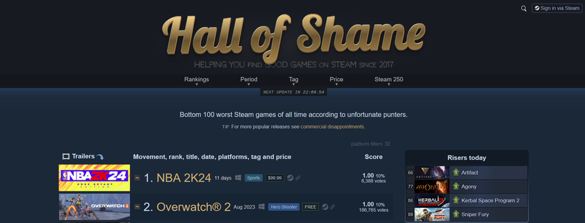 Wir schrieben, dass der Basketball-Simulator NBA 2K24 4 Tage nach seiner Veröffentlichung am 8. September in die Hall of Shame-Liste aufgenommen wurde und den 2. Platz belegte, aber jetzt hat sich die Situation etwas geändert.