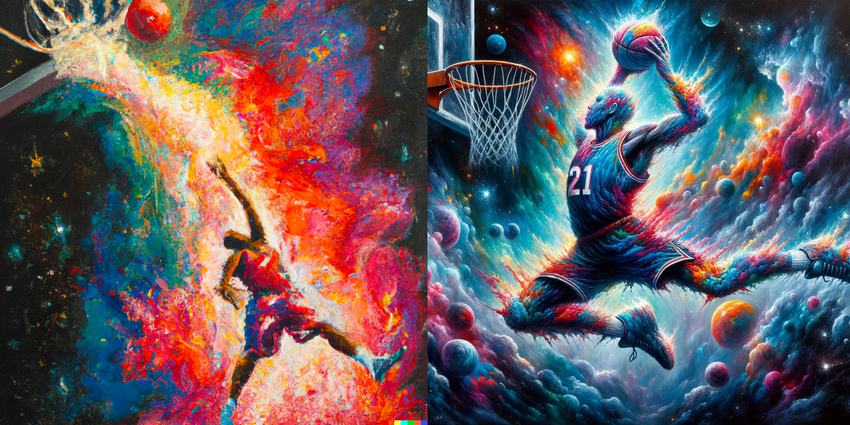 Vergleich der Ergebnisse von DALL-E 2 (links) und DALL-E 3 (rechts), die durch dieselbe Anfrage erzeugt wurden