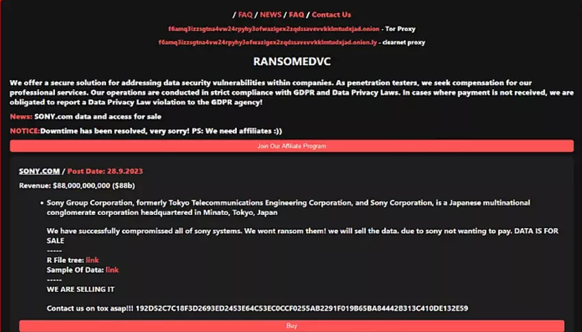 Anscheinend haben die Angreifer von Ransomed.vc ein Lösegeld von Sony gefordert, aber die Japaner haben sich geweigert, so dass die Hacker offen anbieten, Daten über das gesamte Geschäft von Sony, einschließlich PlayStation, von ihnen zu kaufen.