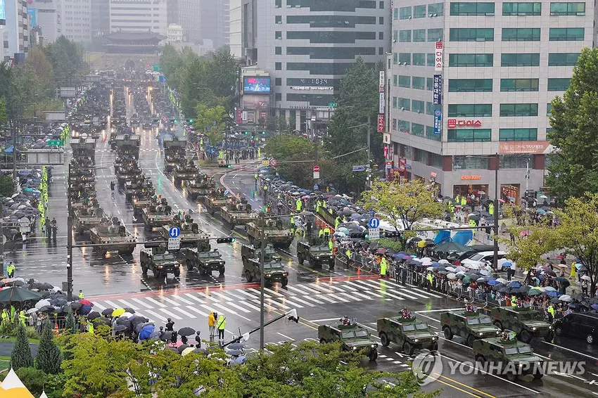 Bei der Militärparade stellte Seoul mehr als 170 militärische Ausrüstungsgegenstände aus. Darunter befanden sich K2 Black Panther-Panzer, K9 Thunder-Haubitzen, Raketenwerfer und unbemannte Luftfahrzeuge. Die geplanten Flüge der AH-64-Apache-Hubschrauber und der F-35 Lightning II-Kampfjets der fünften Generation wurden wegen des schlechten Wetters abgesagt.