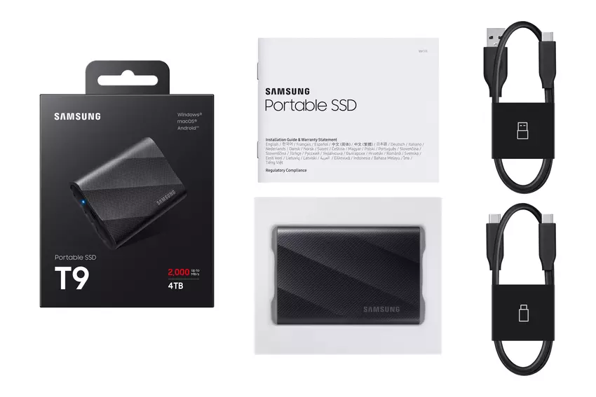 Das neue Produkt trägt den Namen Samsung Portable SSD T9. Das Gerät erhielt ein geschütztes Gehäuse nach dem internationalen Standard IEC 62368-1, sowie eine USB 3.2 Gen 2×2 Schnittstelle mit Schreib-/Lesegeschwindigkeiten von bis zu 2000 MB/s (doppelt so schnell wie das Modell T7). Damit kann das Laufwerk 4 GB Full HD-Videos in nur zwei Sekunden übertragen.