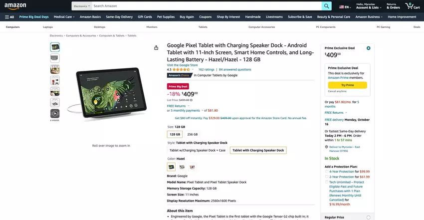 Amazon Prime Big Deal: Google Pixel Tablet mit $90 Rabatt