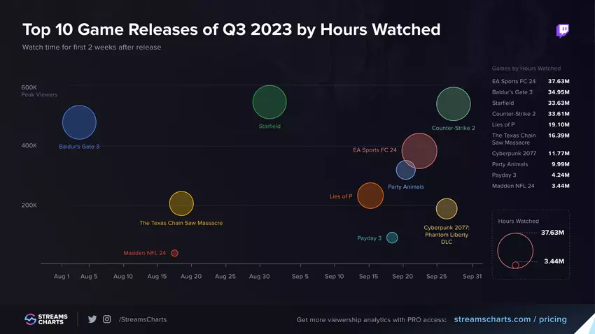 100 Millionen Sehstunden: EA Sports FC 24, Baldur's Gate 3 und Starfield sind die beliebtesten Veröffentlichungen des 3. Quartals 2023 auf Twitch