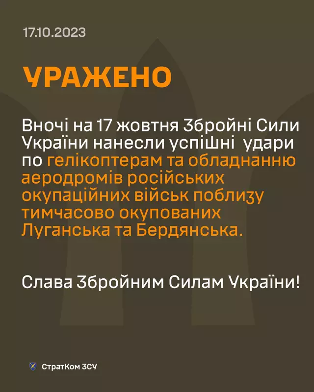 In der Nacht zum 17. Oktober griffen die ukrainischen Streitkräfte erfolgreich Flughäfen in den vorübergehend besetzten Gebieten an.
