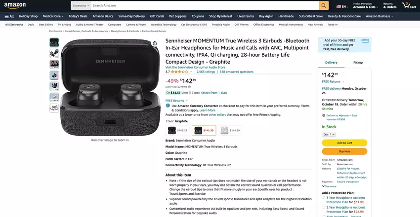 Sennheiser MOMENTUM True Wireless 3 ist auf Amazon für $142 ($137 Rabatt) erhältlich