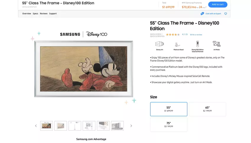 Samsung hat The Frame TV Disney 100 Edition TVs mit Bildschirmdiagonalen von 55, 65 und 75 Zoll zurückgebracht