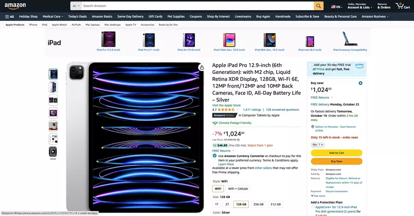 - iPad Pro, 128 GB, Wi-Fi + 5G - check price on amazon.00, check price on amazon.