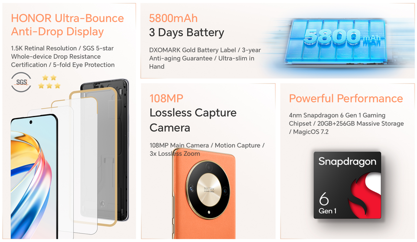 Honor X9b: 120Hz AMOLED-Display, Snapdragon 6 Gen 1 Chip, 108 MP Kamera und 5800 mAh Akku