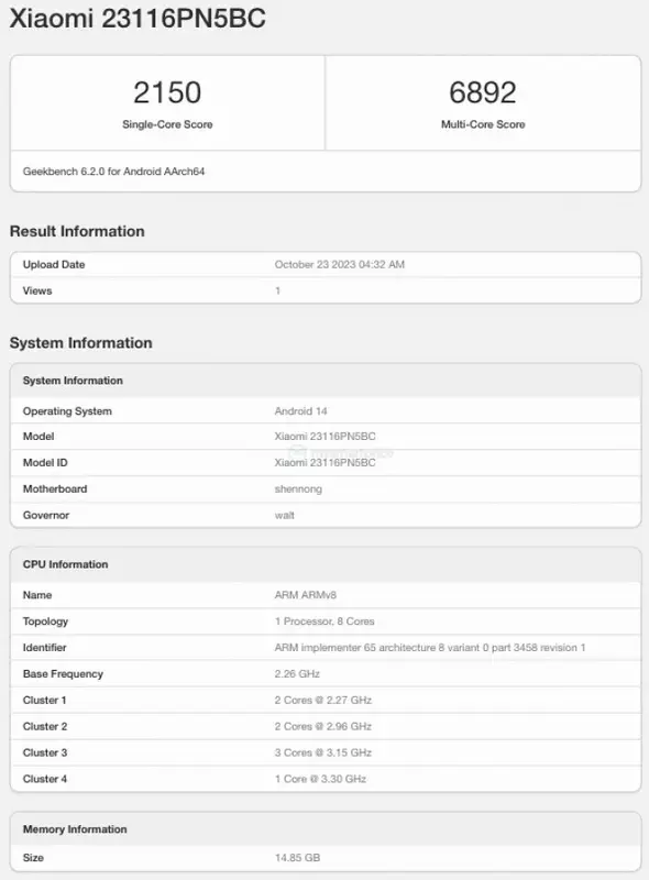 Heute ist das Xiaomi 14 Pro in der Geekbench 6 Software-Datenbank aufgetaucht. Dies geschieht einen Tag nachdem das Xiaomi 14 im Geekbench 5 aufgetaucht ist.