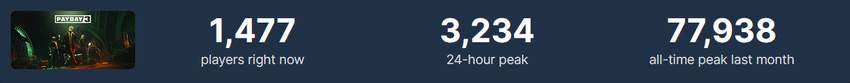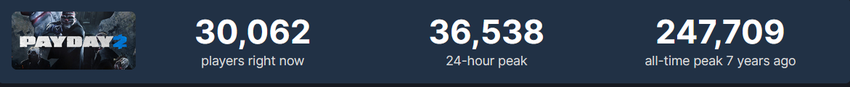 Und Payday 2 läuft immer noch gut. Der Online-Spitzenwert liegt immer bei 30 Tausend Spielern, und das Spiel gehört zu den 30 beliebtesten Spielen auf Steam.