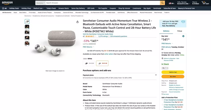 Wir sprechen über den Sennheiser Momentum True Wireless 2. Die Kopfhörer in weiß sind im Angebot für $259.96 $276.90, -6%. Eine schwarze Version ist ebenfalls erhältlich, kostet aber etwas mehr mit check price on amazon.