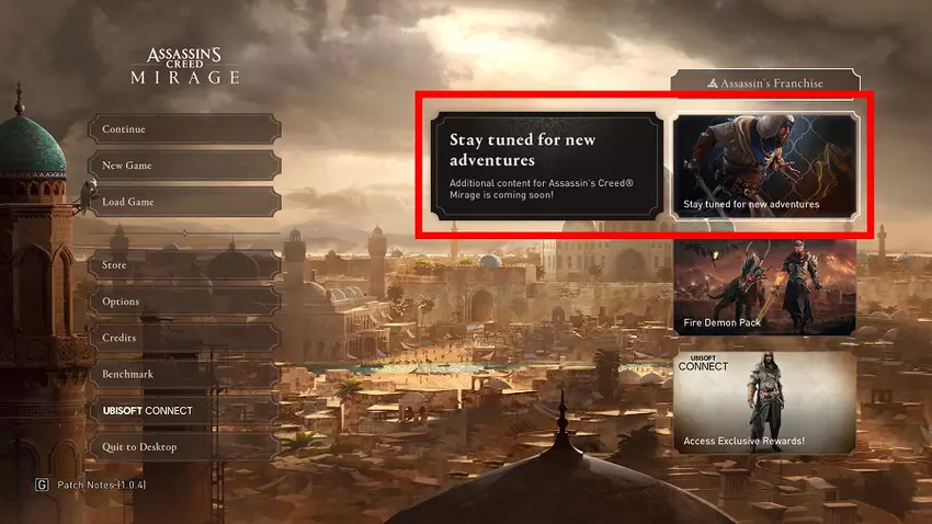 Netzwerknutzer fanden im Hauptmenü von Assassin's Creed Mirage ein Werbebanner, in dem die Entwickler die Spieler aufforderten, die Nachrichten zu verfolgen und sich auf neue Abenteuer vorzubereiten, da zusätzliche Inhalte für das Actionspiel "sehr bald" veröffentlicht werden!
