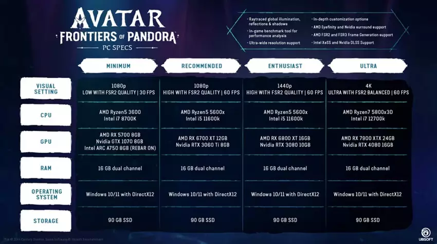 Publisher Ubisoft hat die Systemanforderungen für das Actionspiel Avatar: Frontiers of Pandora veröffentlicht.