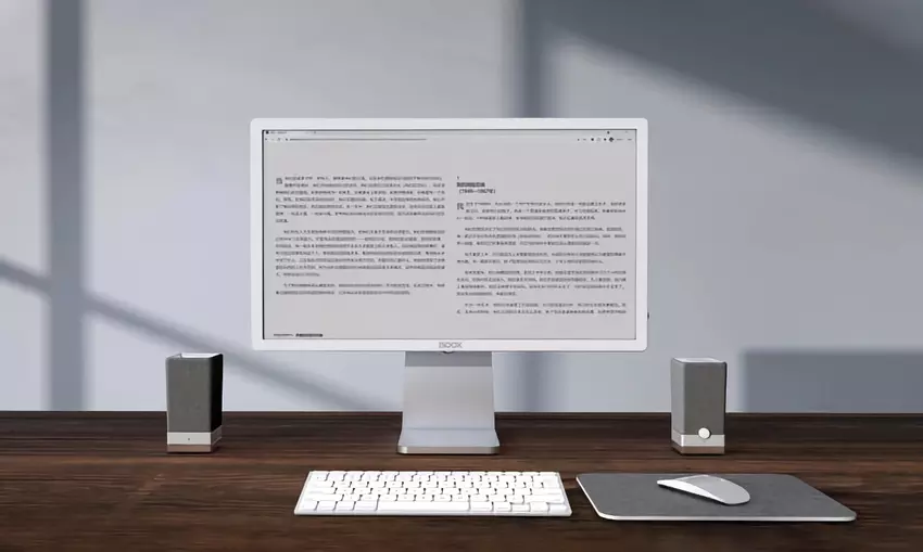 Die Neuheit erhielt ein 25,3-Zoll E-Ink-Display und ein Gehäuse aus Aluminiumlegierung. Das Verhältnis von Bildschirm zu Gehäuse beträgt 85%. Der Monitor ist mit einem Standfuß ausgestattet, mit dem Sie das Gerät um 90 Grad drehen können.