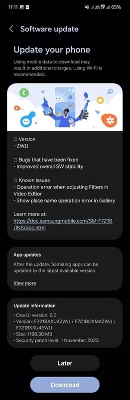 Das Update wurde mit dem Namen One UI 6.0 Beta 2 und der Build-Nummer F721BXXU4ZWJJ veröffentlicht. Die Firmware wiegt 1,2 GB. Die Teilnehmer des Beta-Testprogramms in Indien haben bereits damit begonnen, sie zu erhalten. In den USA und Europa wird das System in den nächsten Tagen verfügbar sein.