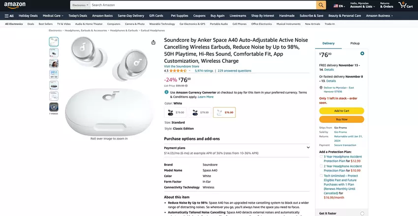 - Soundcore by Anker Space A40, Weiß - $59.00 $79.99, -26%.