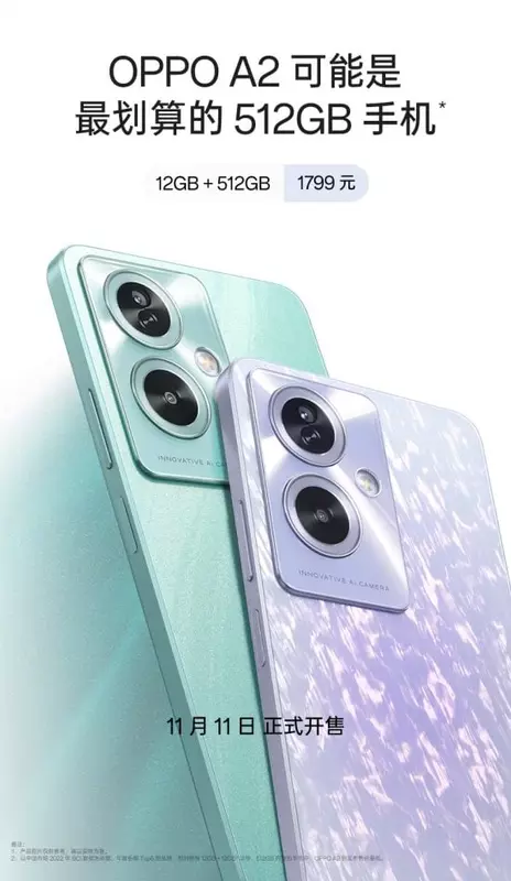 Der Verkauf des OPPO A2 5G wird in China am 11. November beginnen. Das Smartphone wird in zwei Speichervarianten erhältlich sein: