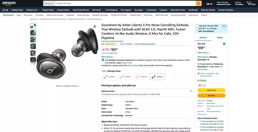 Es handelt sich um den Soundcore by Anker Liberty 3 Pro in Midnight Black für check price on amazon. Es sind auch andere Farben erhältlich, aber sie kosten mehr - check price on amazon.