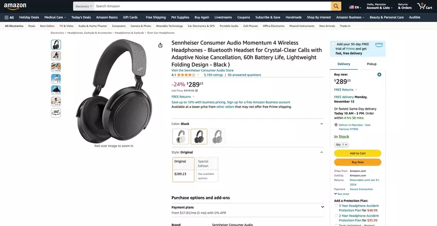 Es handelt sich um den Sennheiser Momentum 4 in Schwarz für $379.95 $449.95, -16%. Die Farbe Weiß ist ebenfalls erhältlich, kostet aber mehr mit $379.95 $449.95, -16%.