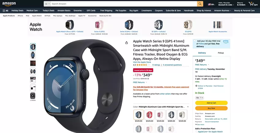 - Apple Watch Series 9 [GPS 41mm] - check price on amazon.