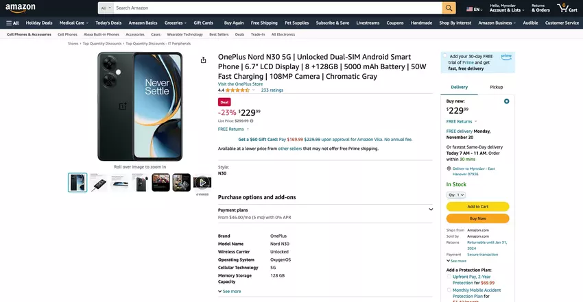 Nicht nur OnePlus Nord Buds 2: OnePlus Nord N30 5G ist bei Amazon mit einem Rabatt von 70 Dollar erhältlich