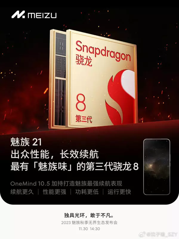Es ist offiziell: Das Meizu 21 mit Snapdragon 8 Gen 3 Chip wird am 30. November auf den Markt kommen