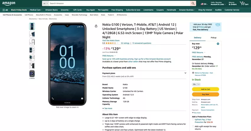 Nokia G100 mit Snapdragon 662-Chip und 5000-mAh-Akku ist auf Black Friday Verkauf für $ 129 verfügbar