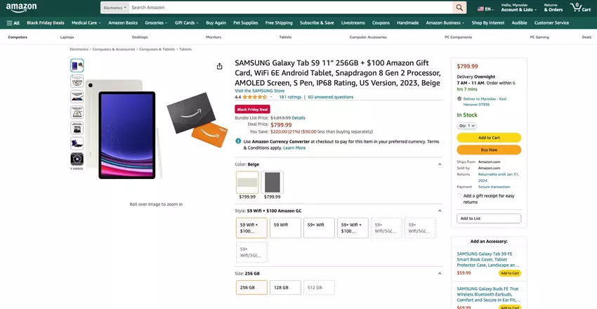 Samsung Galaxy Tab S9 mit 256 GB Speicherplatz kann beim Black Friday Sale mit einem Rabatt von $220 gekauft werden