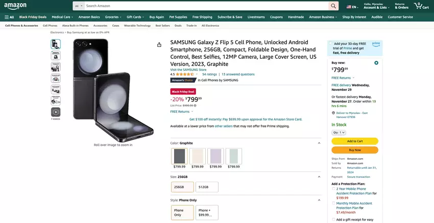 - Samsung Galaxy Flip 5, 128GB - $849.97 $999.99, -15%.
