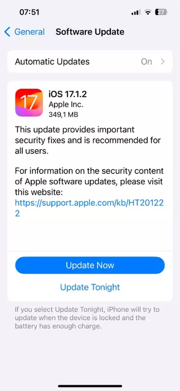 Die Firmware wurde unter dem Namen iOS 17.1.2 veröffentlicht und wiegt 349 MB. Es handelt sich um ein kleines Update ohne neue Funktionen. Die Apple-Entwickler haben lediglich das System optimiert, Bugs behoben und die Sicherheit der Software verbessert.
