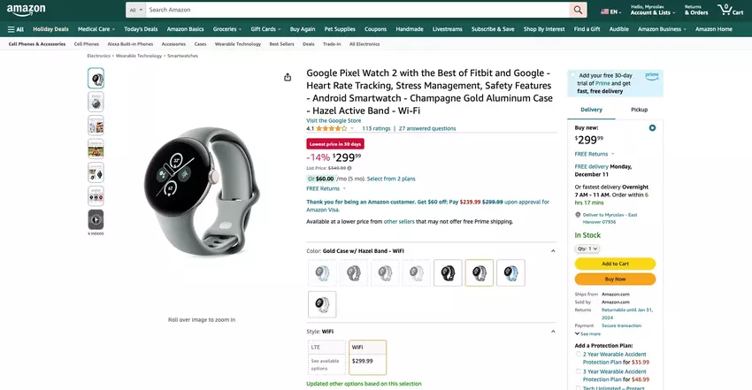 Google Pixel Watch 2 ist zum ersten Mal bei Amazon mit einem Rabatt von $50 erhältlich