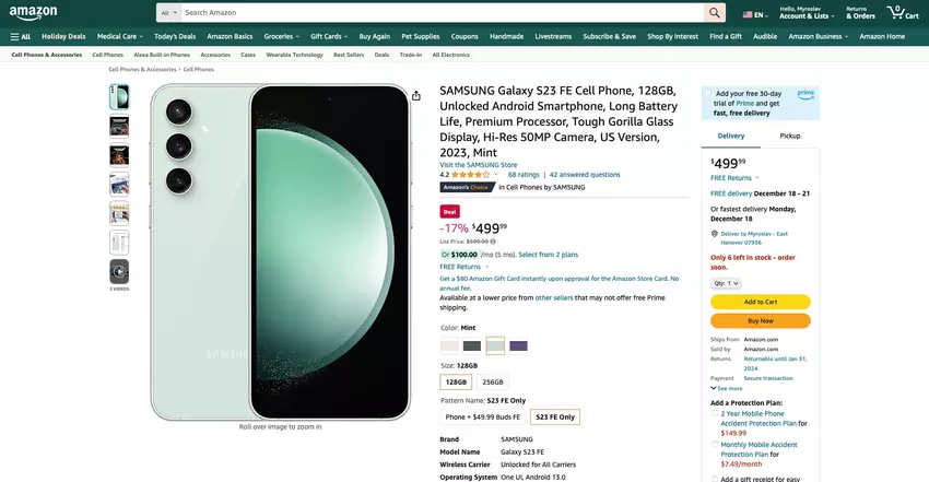 - Samsung Galaxy S23 FE, 128 GB - check price on amazon.