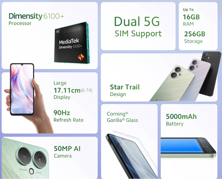 Redmi 13C 5G: 90Hz Display, MediaTek Dimensity 6100+ Chip, 50 MP Kamera und 5000 mAh Akku für $130