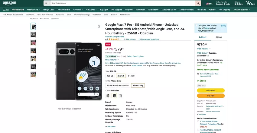 - Google Pixel 7 Pro, 256 GB - $1,365.00 auf amazon prüfen.